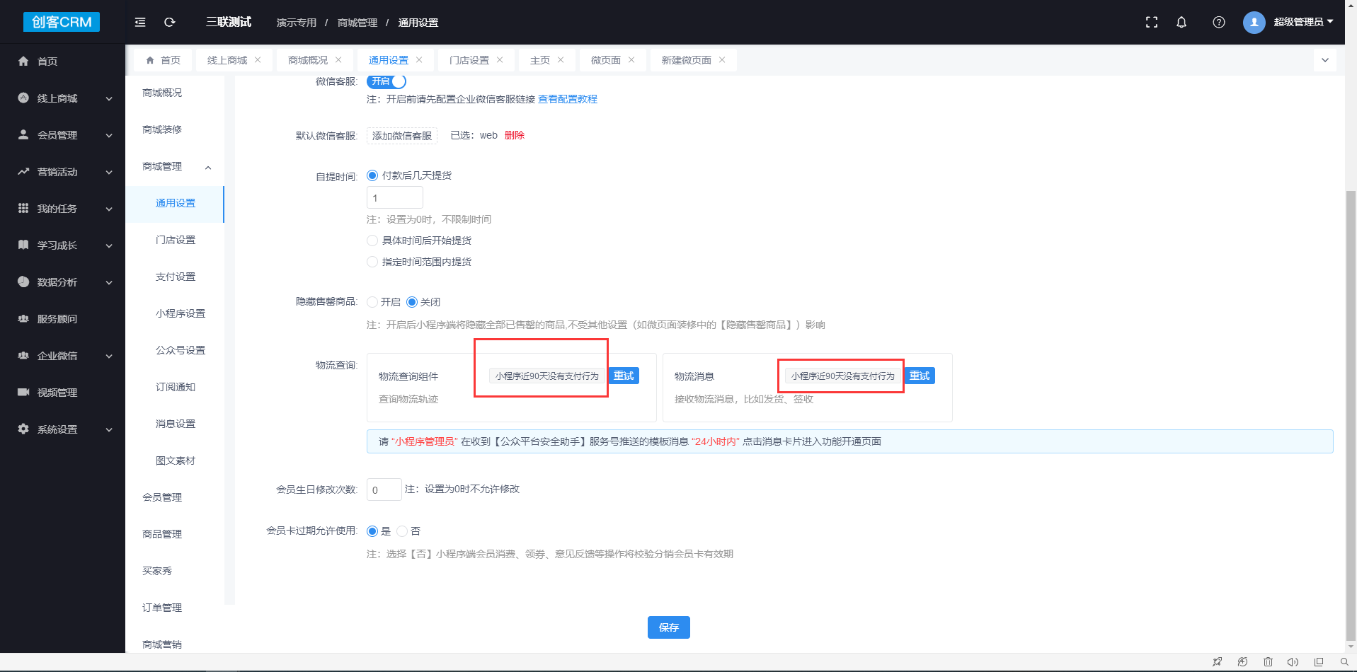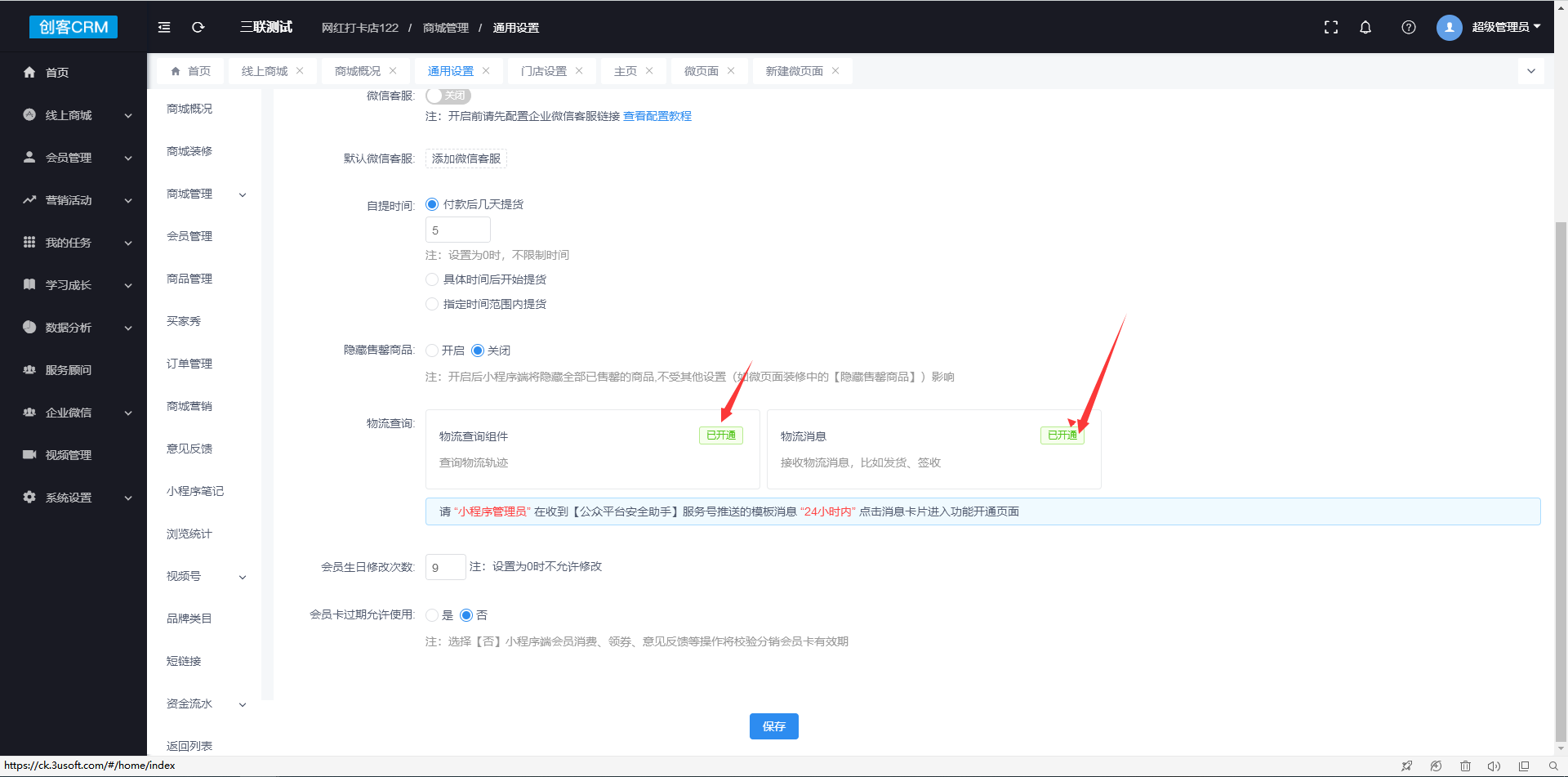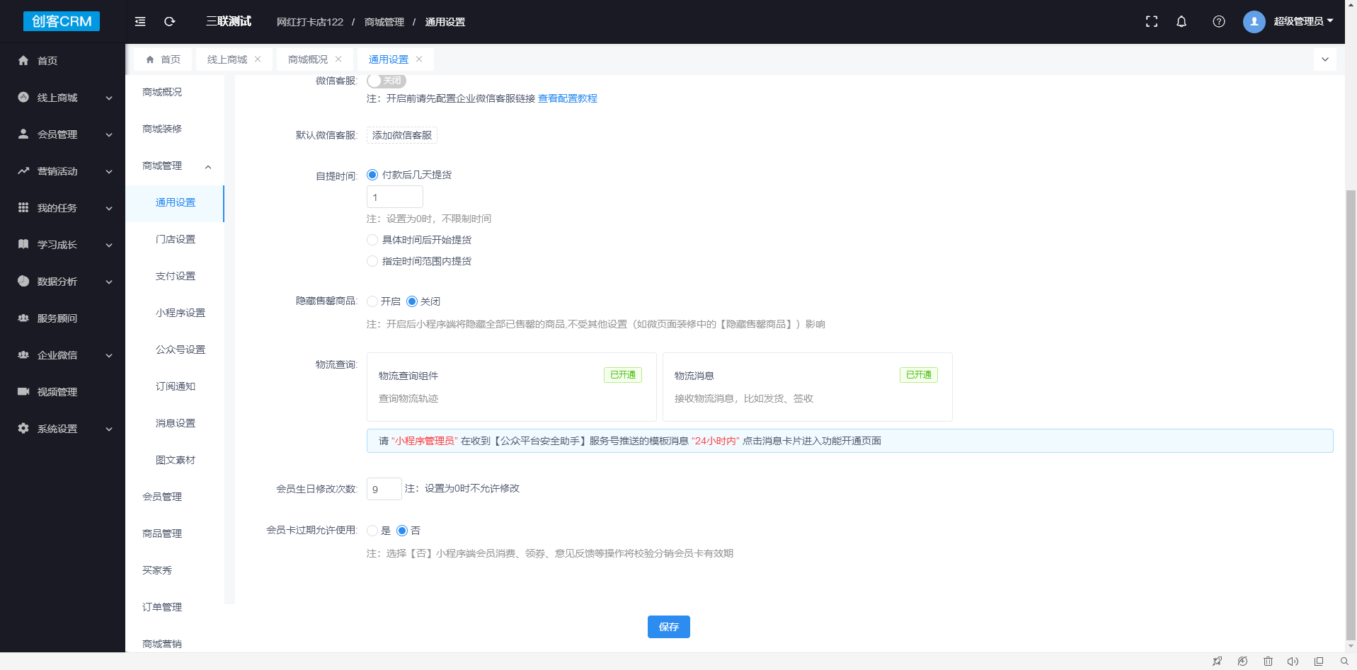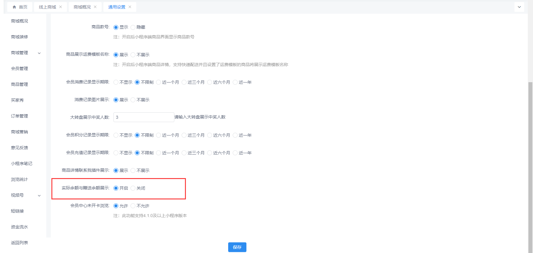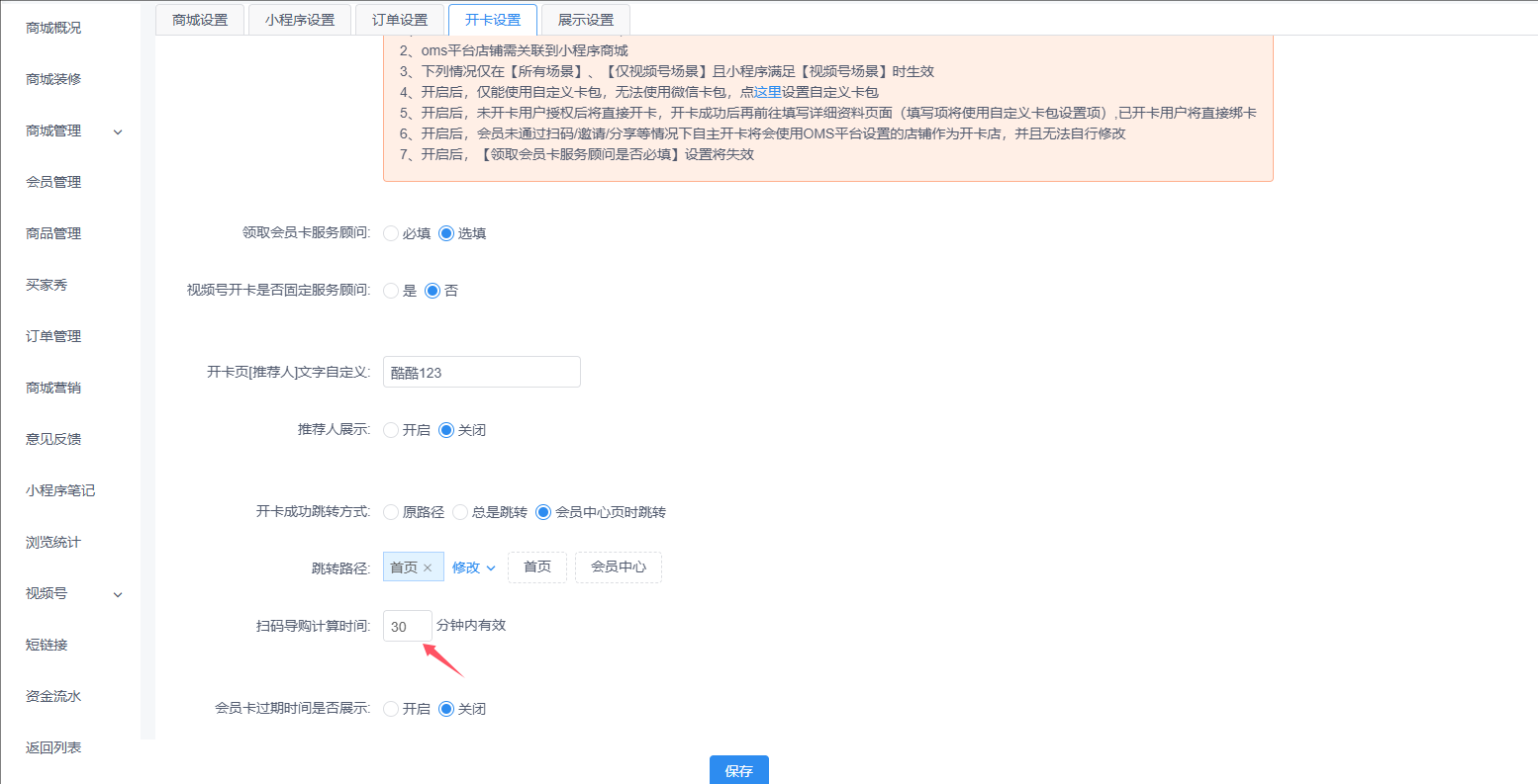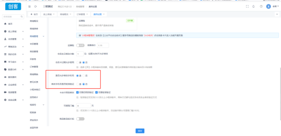 **10,会员卡过期允许使用**:控制会员卡过期之后,是否还能操作消费、领券、意见反馈等(会员卡过期设置请到分销后台进行设置)