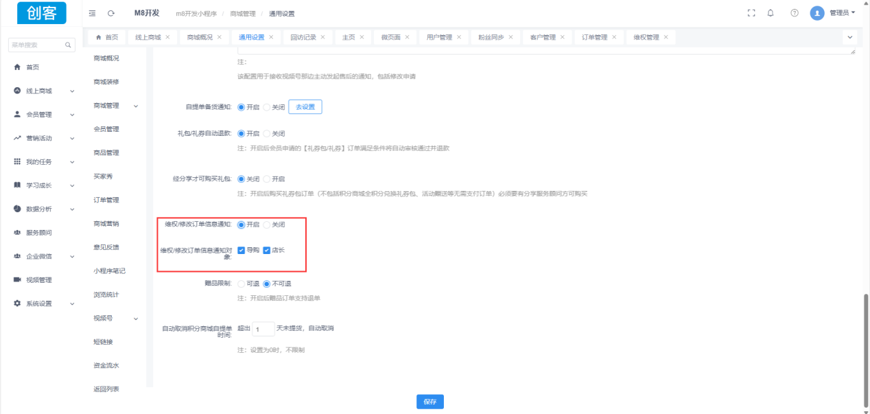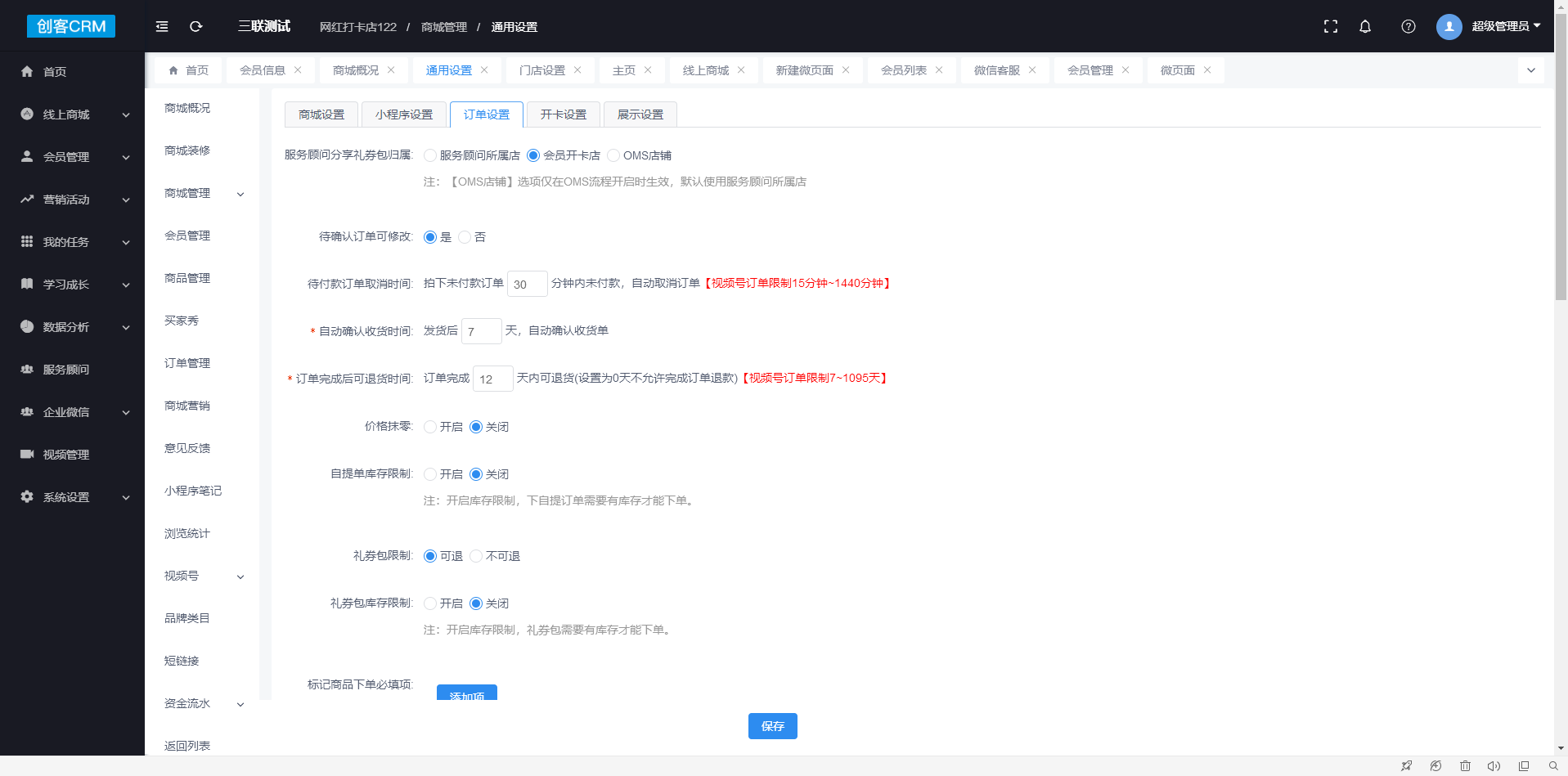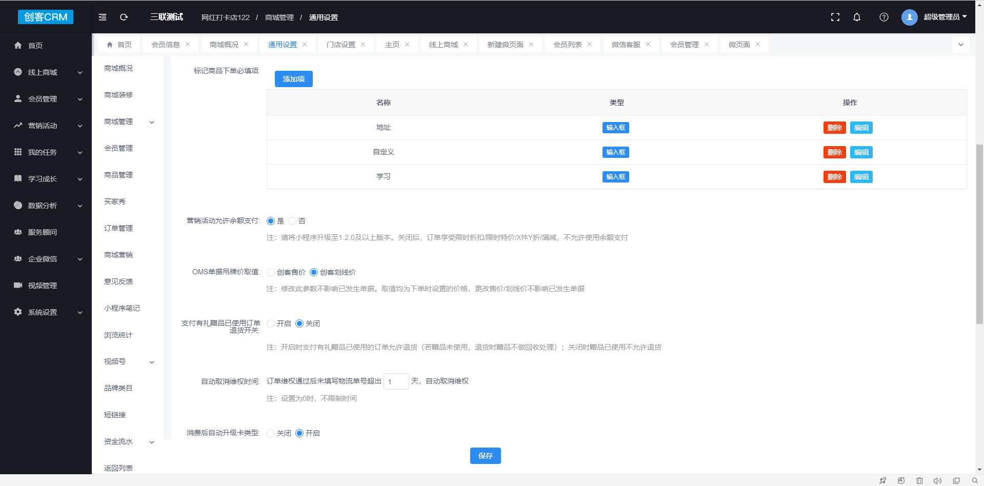 **13,支付有礼赠品已使用订单退货开关**:开启时支付有礼赠品已使用的订单允许退货(若赠品未使用,退货时赠品不做回收处理);关闭时赠品已使用不允许退货(赠品包含代金券)