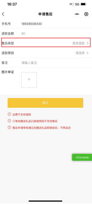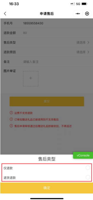 关闭:关闭后已发货订单发起申请退款只能选择退货退款