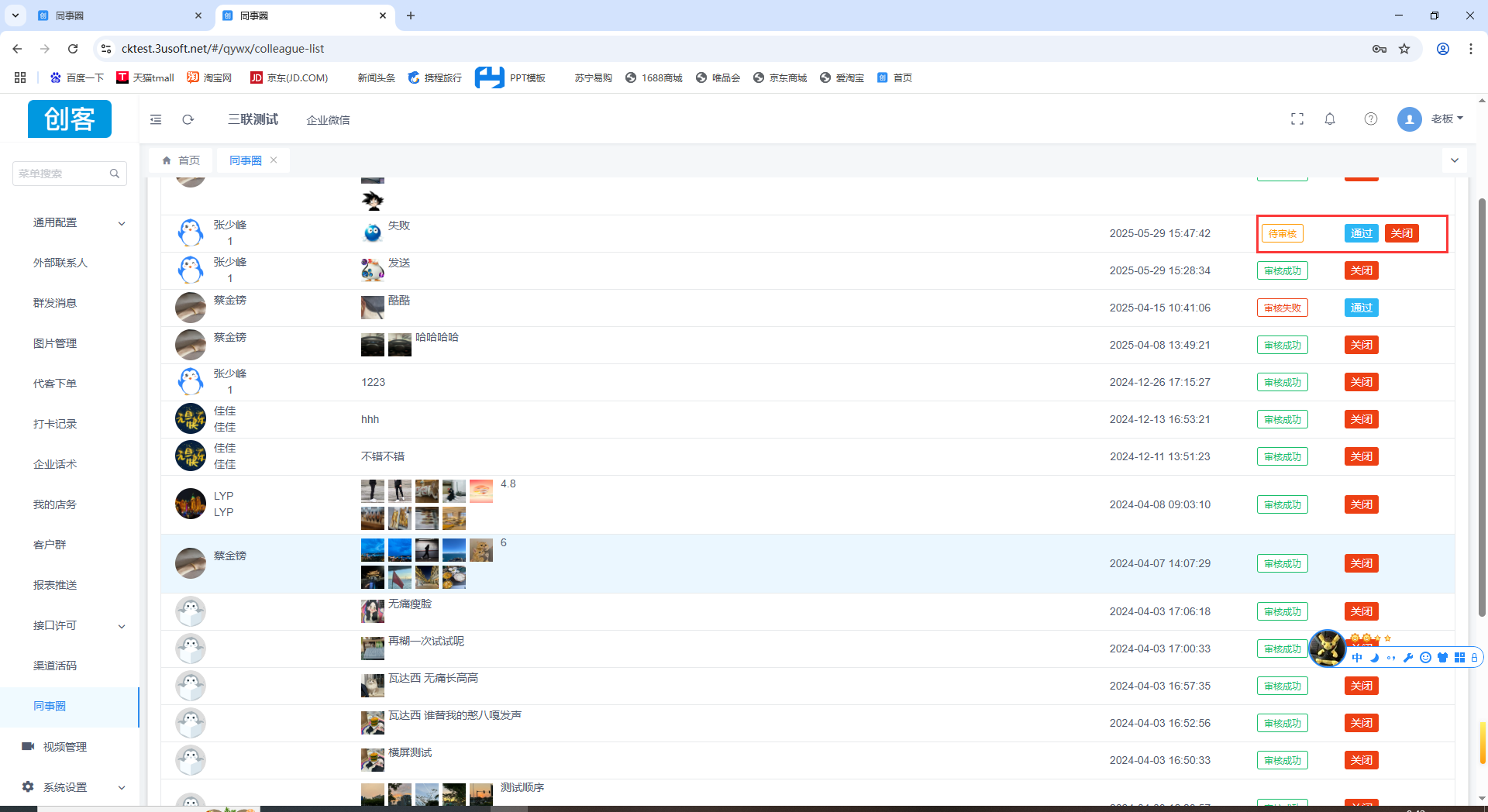 2.在创客同事圈进行审核,通过后在企业微信快乐企鹅上才能看见