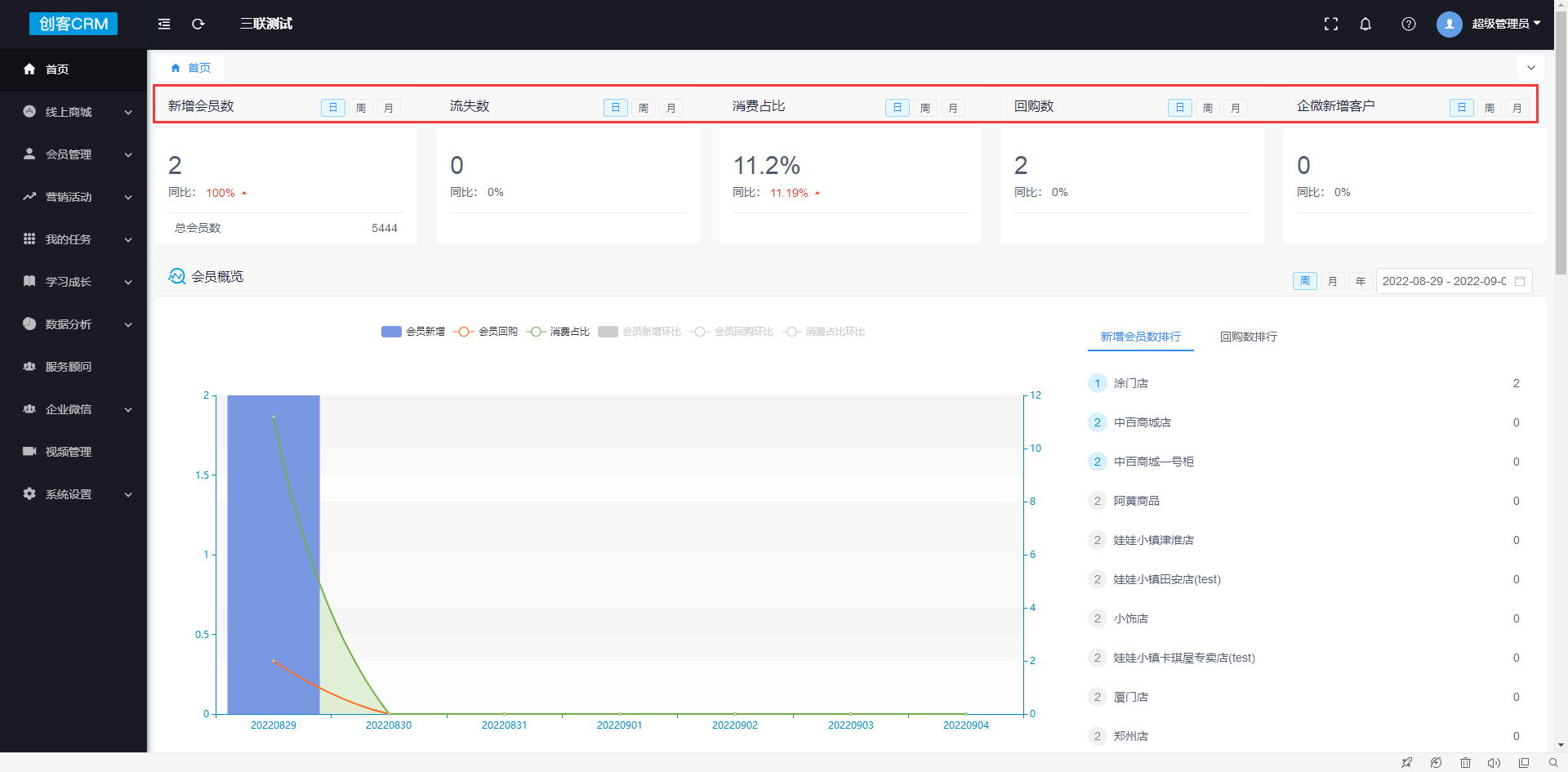 **新增会员数**:线上和线下新开的会员总数