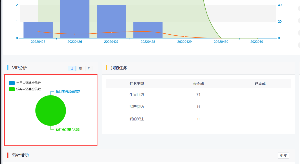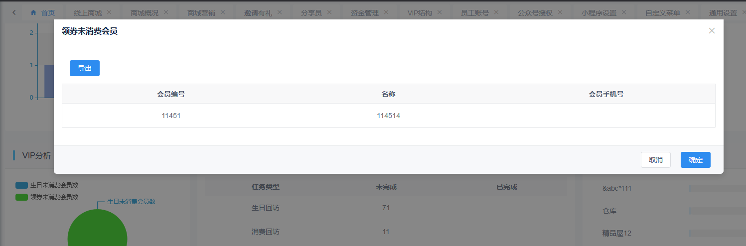 vip分析生日未消费会员数和领券未消费会员数增加查看明细。