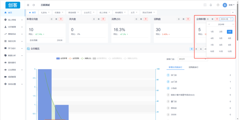 1.创客首页企业新增会员数可以查看之前月份