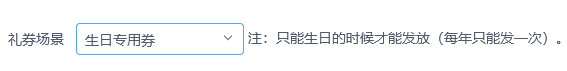 **生日专用券**:只能生日的时候才能发放(**每年只能发一次**)
