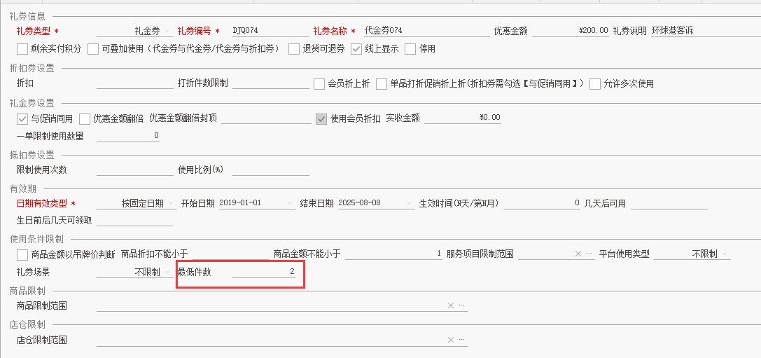 **2.6可领取的会员卡**:限制可以领取该礼券的会员卡类型(如设置金卡则只有金卡才能领取,其他卡都不能领取))