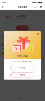 若设置了直接领取,则点击优惠券右侧的领取即可领取,无需跳转到领取页面