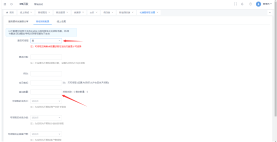 **2.1设置是否可领取**(设置成否在微页面装修时设置领劵选择不到这张卷)