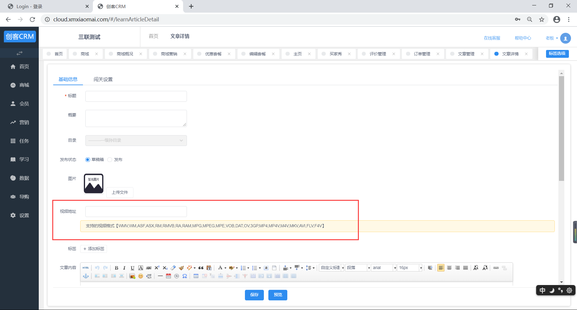 ### **七、文章增加可以输入视频地址**