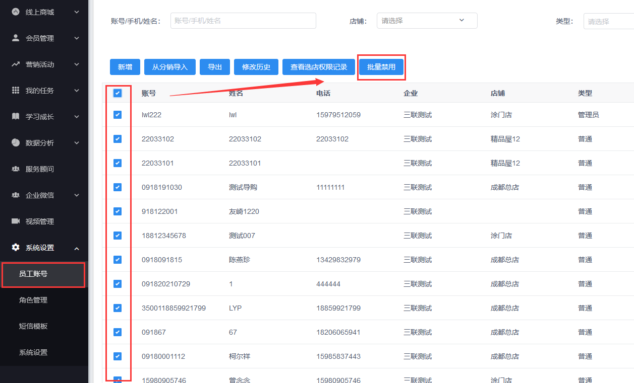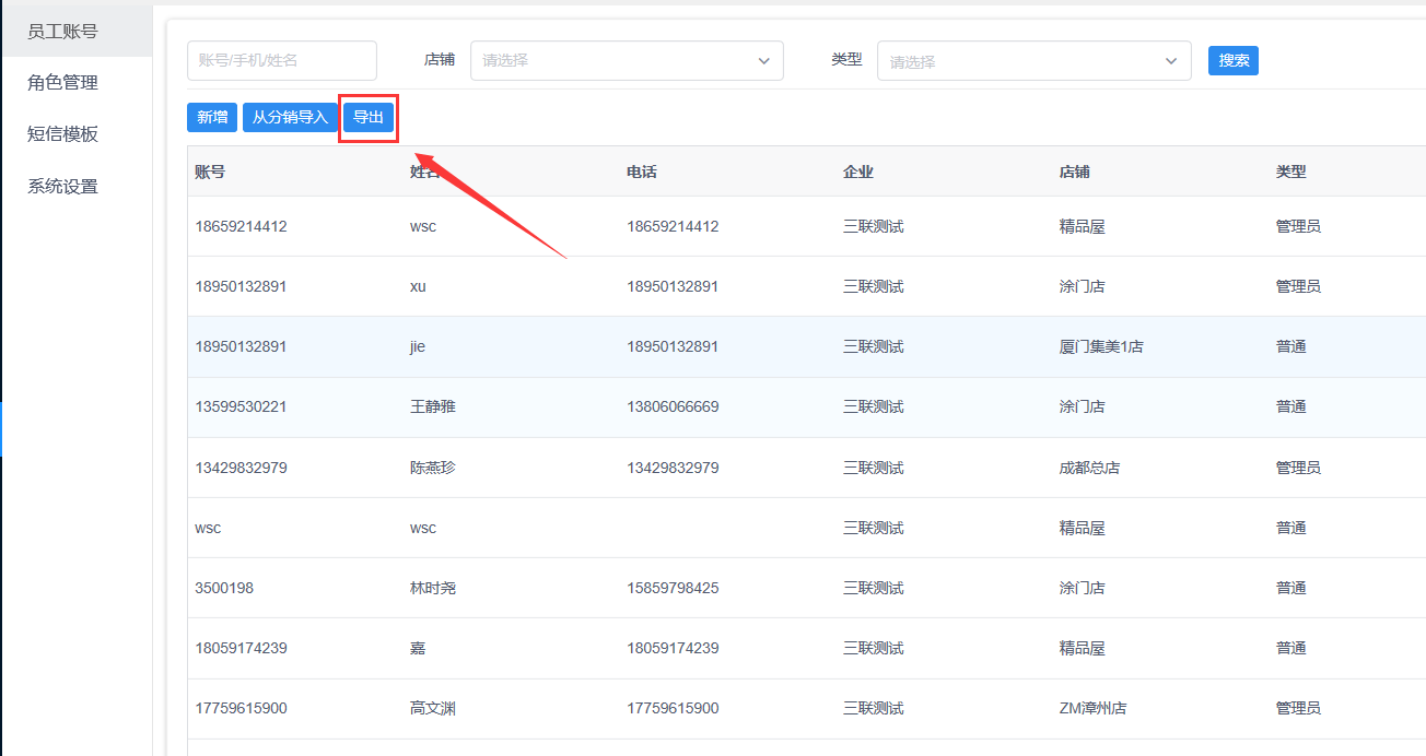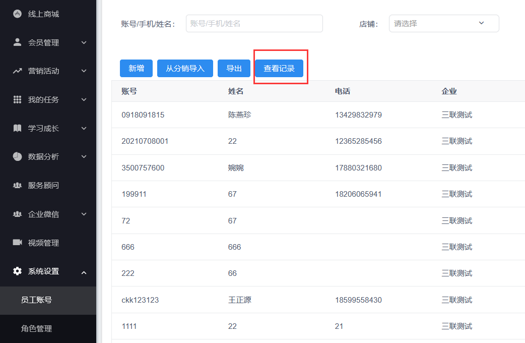 用户也可直接点击【从分销导入】按钮导入分销的员工账号