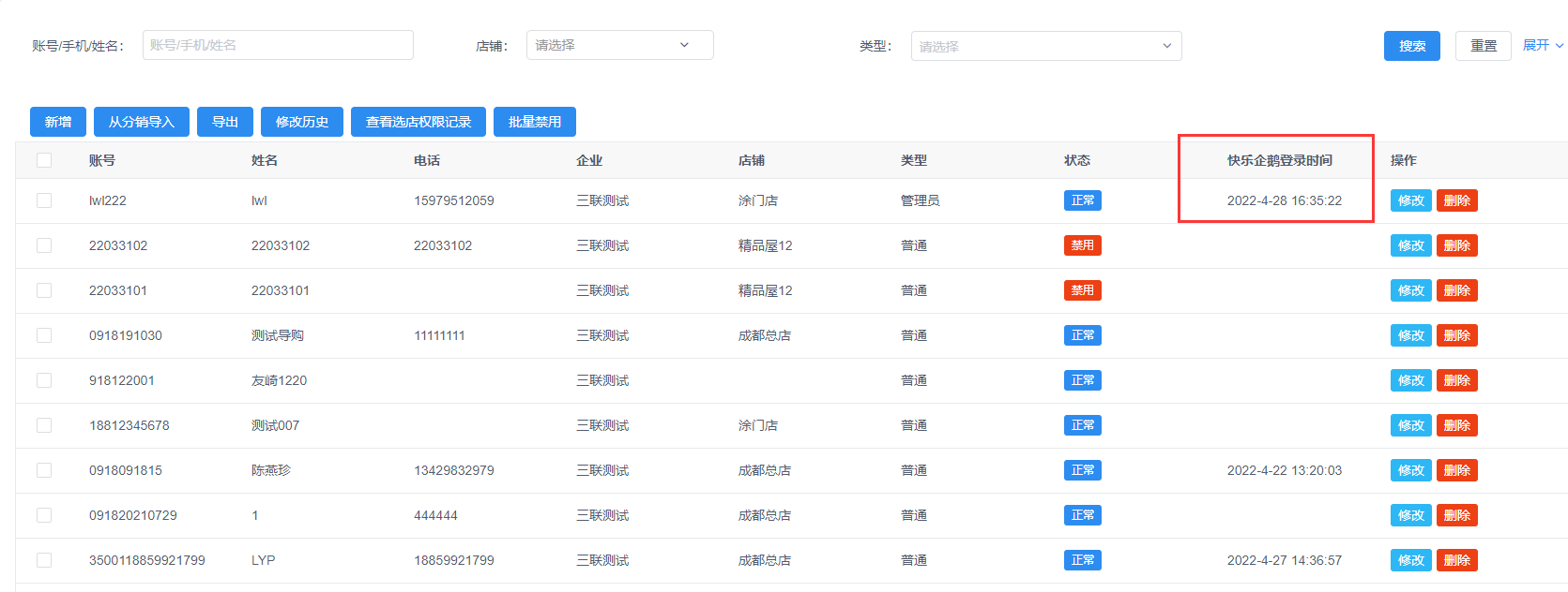 2.员工账号新增,再分销进行对导购禁用或删除创客员工账号状态同步。