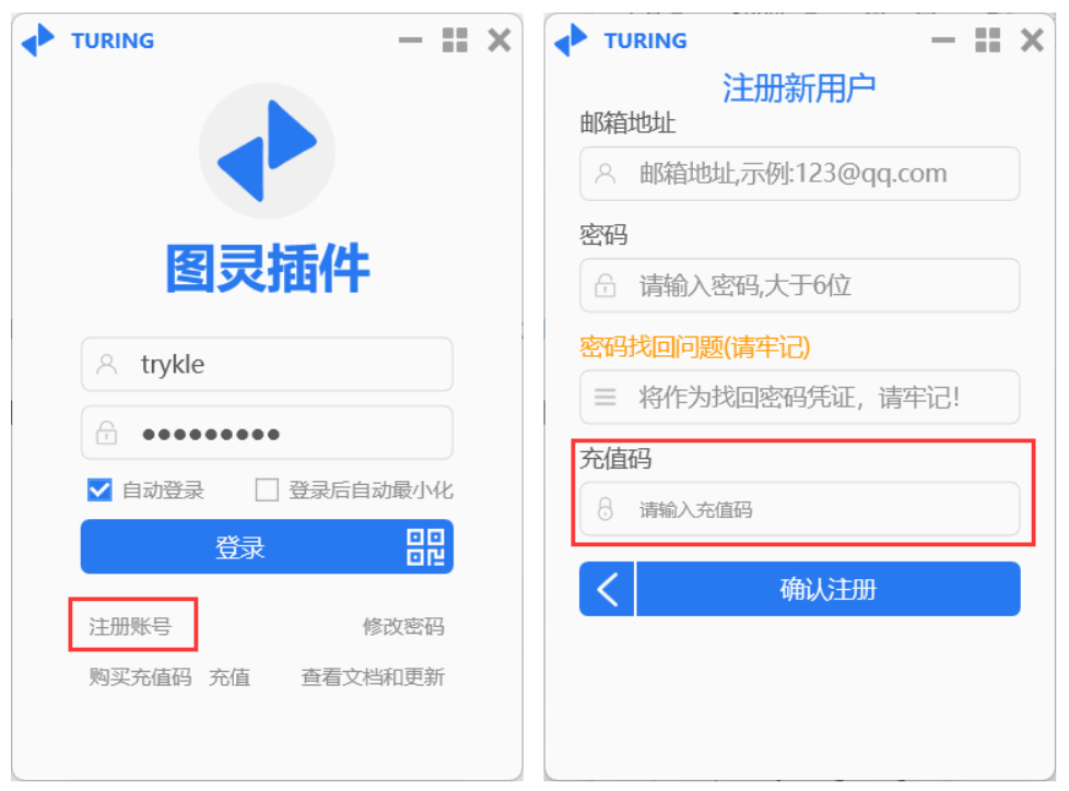 如果你之前没有注册【图灵客户端】的账号,先注册一个(不是上面爱发电网站的账号哦,爱发电只是用来付款获得充值码的)