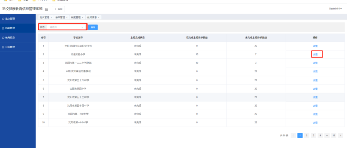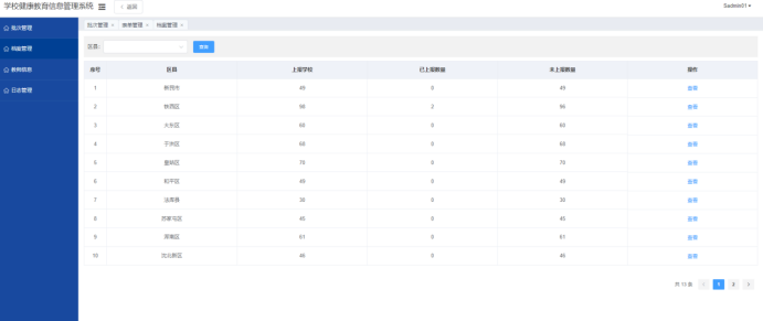 选择要查看区县点击查看,进入学校健康档案填报统计页面。