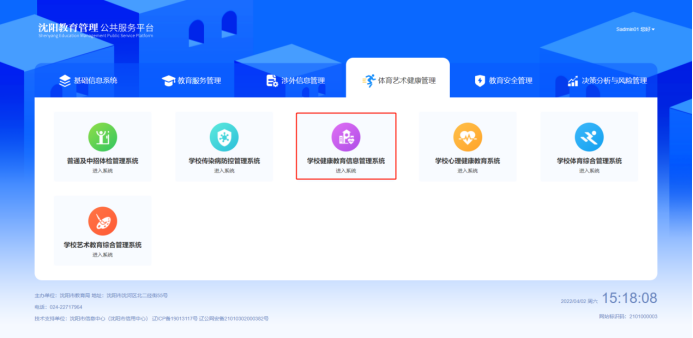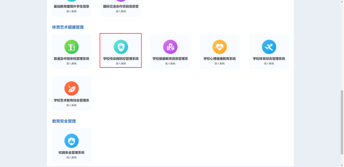 选择体育艺术健康管理,点击学校健康教育信息管理系统,进入系统