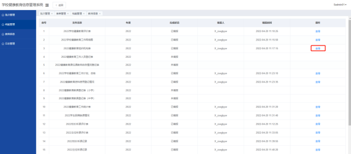 档案管理:针对各个批次管理市局端形成健康教育档案,系统提供统计功能,可查看各健康教育档案具体学校填报信息。