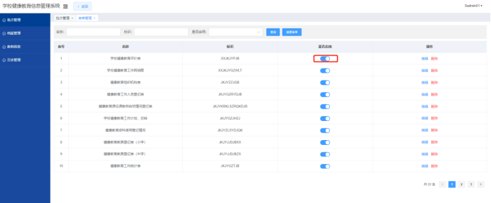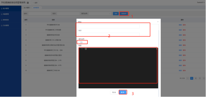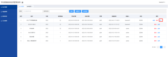 批次管理:市局管理员根据每年度上报表单情况,创建批次管理,进行发布,由学校进行填报具体表单信息。