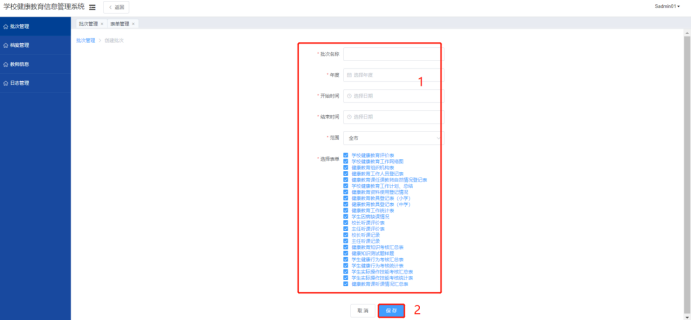 系统以年度为单位,市局端可建立年度批次,下发健康教育批次工作。点击创建批次按钮,填写批次信息。