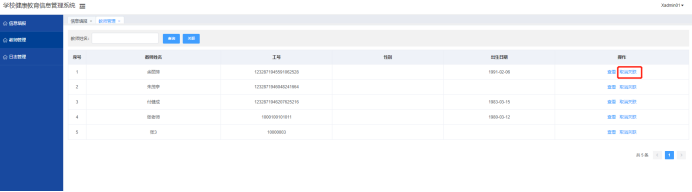 教师信息:系统为学校提供相关健康教育老师信息查看,方便管理员快速查看相关教师信息。
