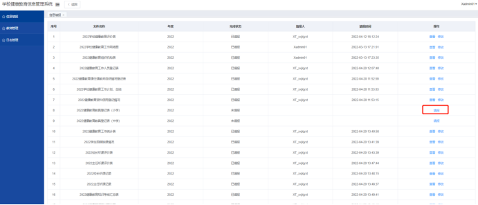 信息填报:信息填报页面涵盖了校级对年度学校健康管理信息档案的查看、搜索、填报等一系列操作。