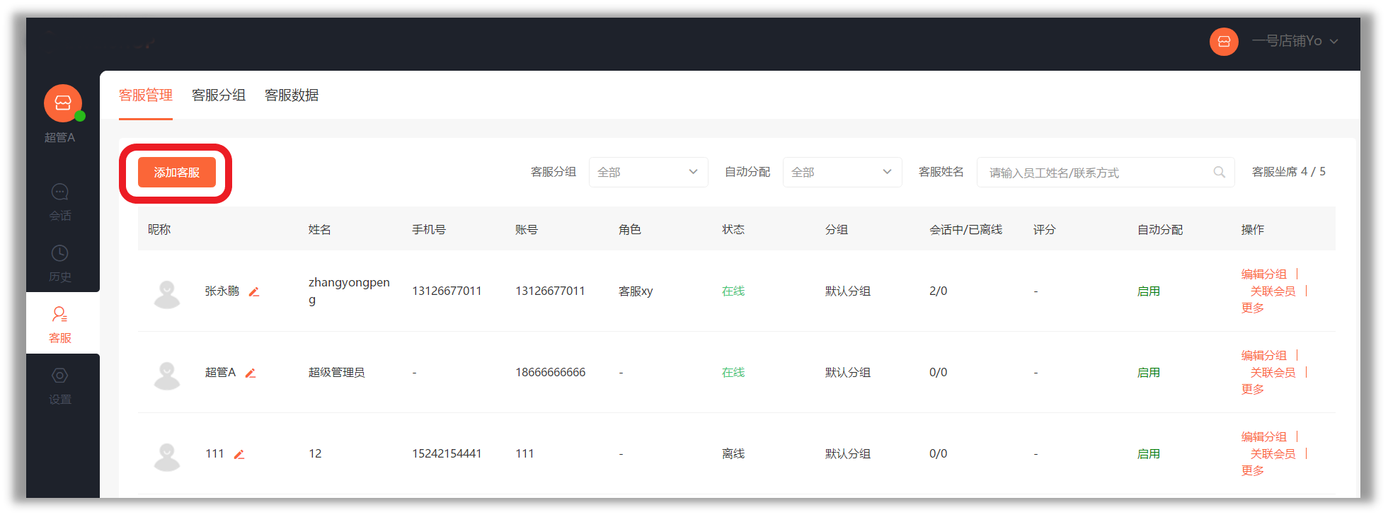 第三步,员工创建完成后,我们要开始【添加客服】啦。