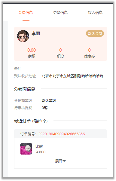 d.分销信息:分销商等级,上级分销商,待审核提现笔数