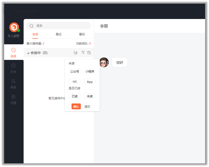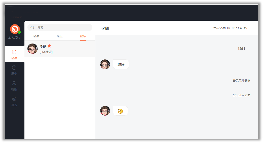 2.会员:可根据会员姓名或昵称搜索相关历史会话
