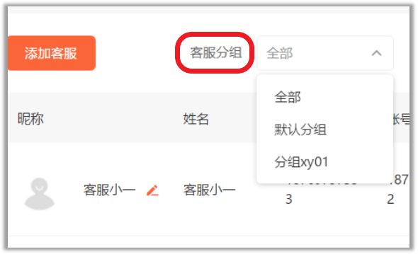 客服分组:所属于哪个客服分组
