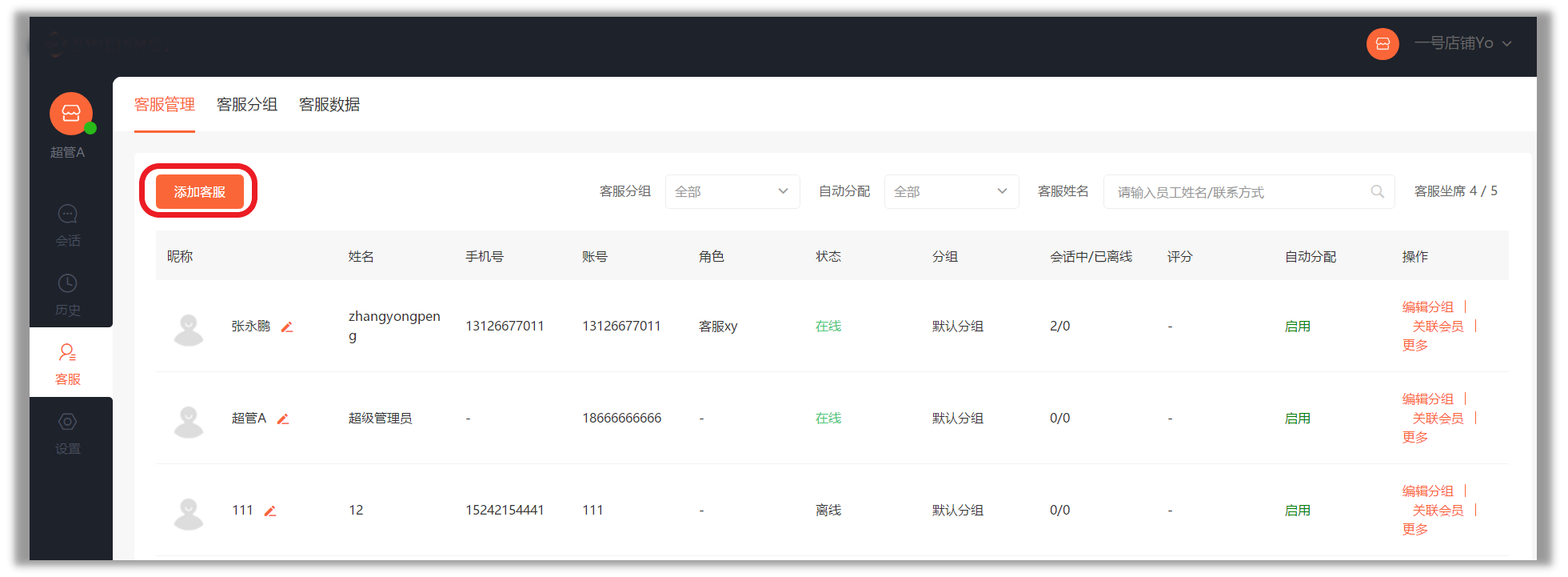 以上就是如何进行客服管理的全部操作,感谢您的观看,如您有不明白的问题请点击下方给我们提交建议!