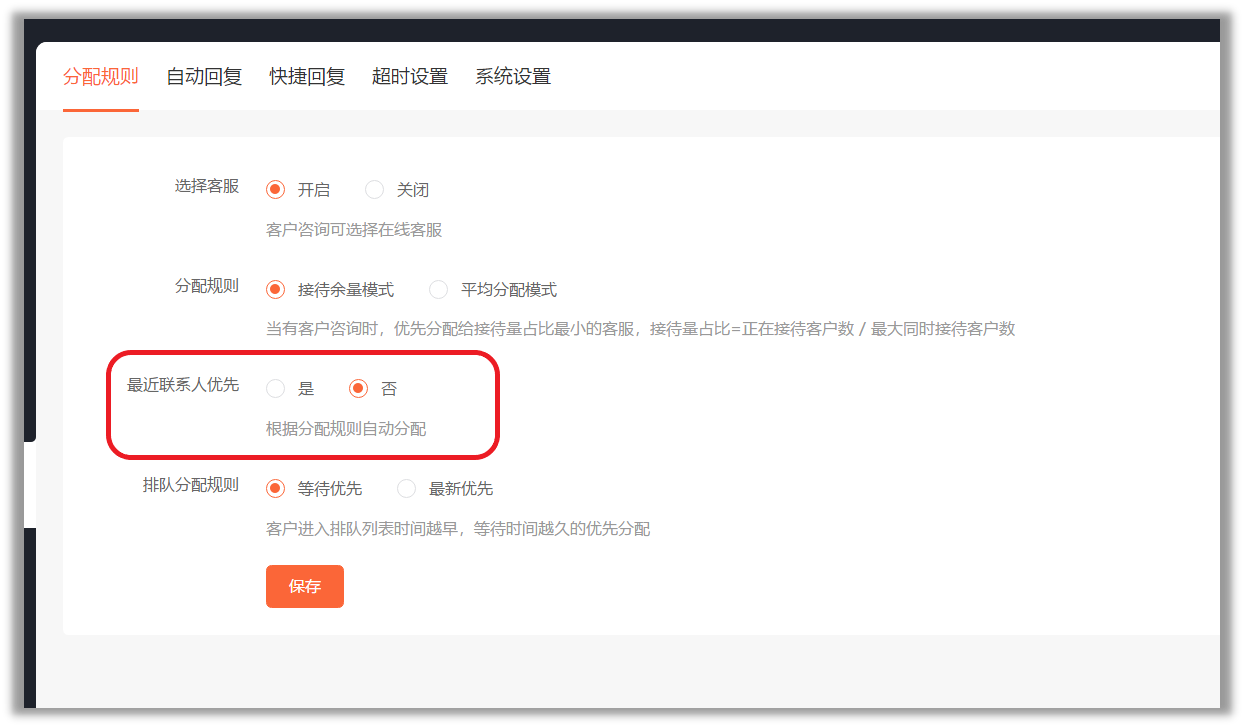 选择否时,客户再次咨询时,根据分配规则进行分配