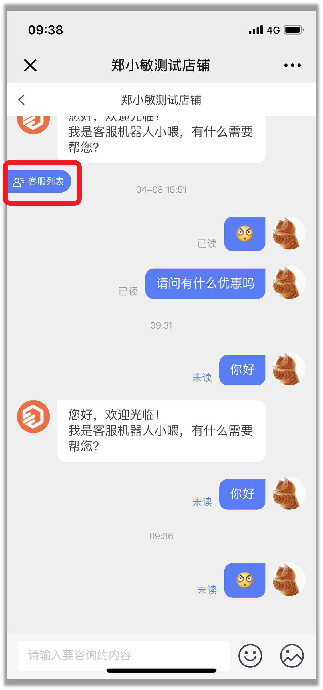 选择开启时,客户在手机端可选择客服进行咨询(提示:客户咨询可选择在线客服)