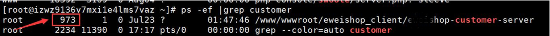 获取 customer 服务进程 ID,在服务器执行命令:**ps -ef |grep customer**