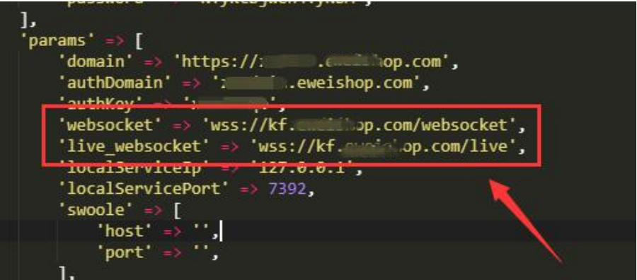 **6\. 修改站点配置文件 main-local.php 文件中 wss 域名为客服域名**