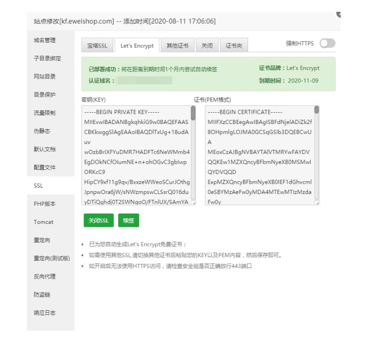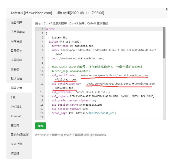 **5\. 修改 ueshop-client.ini 中域名证书路径**