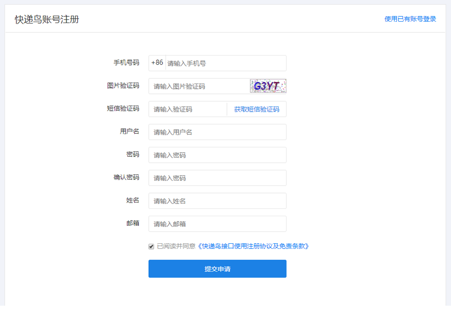 第一步:点击[快递鸟](http://www.kdniao.com/reg),然后点击注册——填写注册信息。