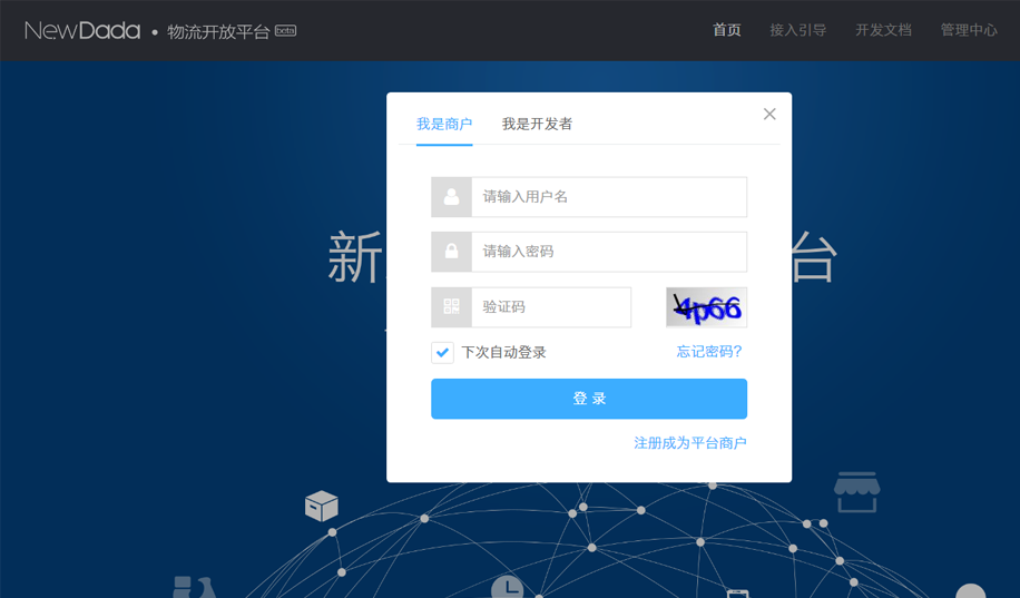第一步:注册平台商户,输入注册达达账号网址:[https://newopen.imdada.cn(点击注册即可)](https://newopen.imdada.cn/),选择我是商户——点击注册,填写手机号和企业资质等信息。