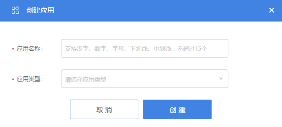 第三步:注册完毕后,登录后台点击控制台——应用管理——创建新应用,填写应用信息。