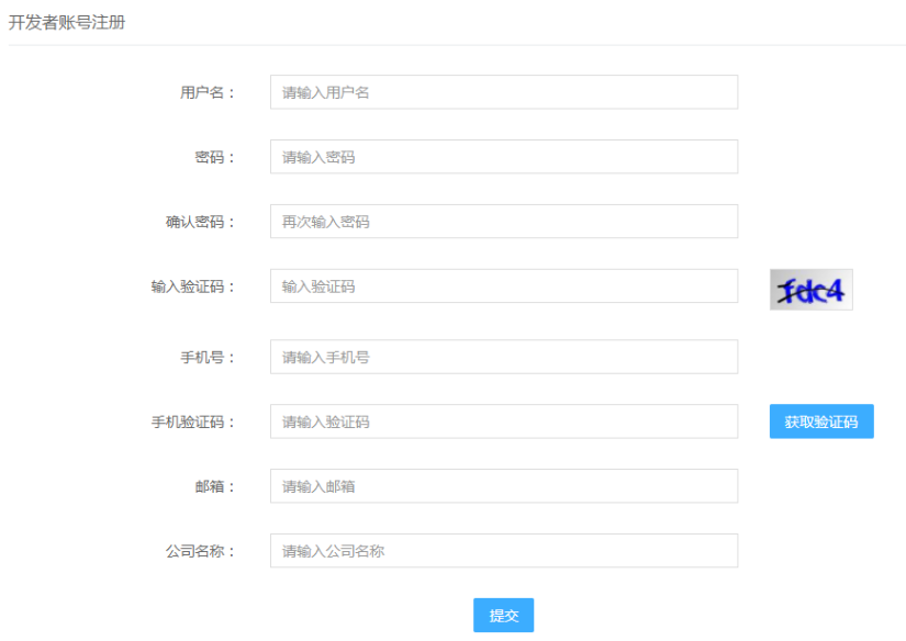 第二步:注册开发者账号,选择我是开发者——点击注册,填写用户名、密码、手机号等信息。