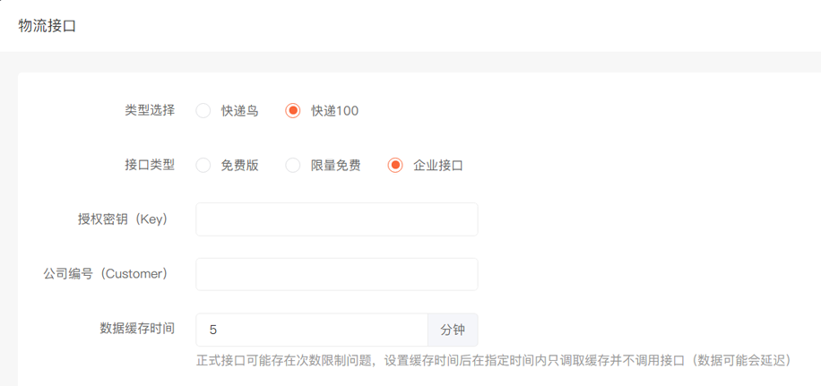 免费版:是商城默认使用的物流接口,适用于80%客户使用无需任何参数设置,直接可点击查看物流信息。