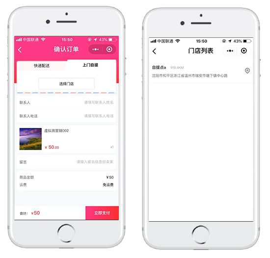 门店设置完成后,会员结算时会门店的显示,手机端显示如下: