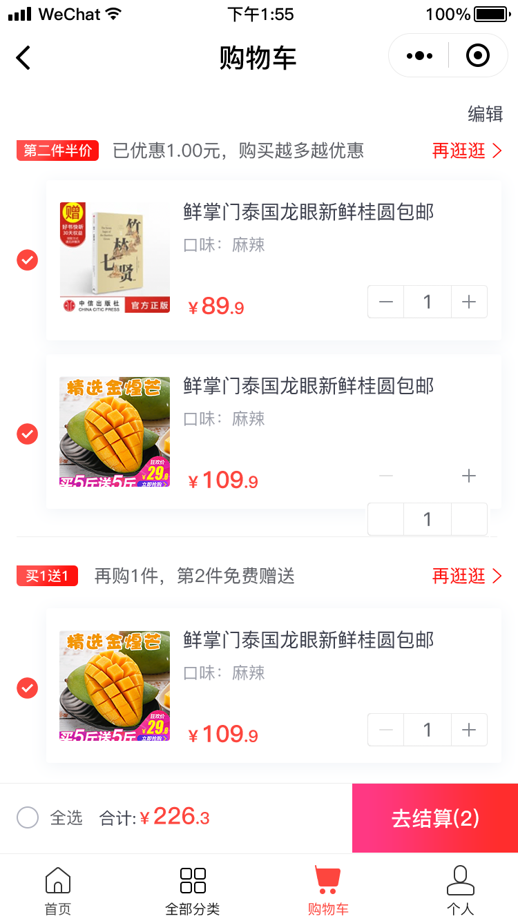 (2)虚拟商品、卡密和计次时商品不支持该活动。会员购买商品时,只要购买的参加活动的商品件数满足优惠条件,即可享受活动价。