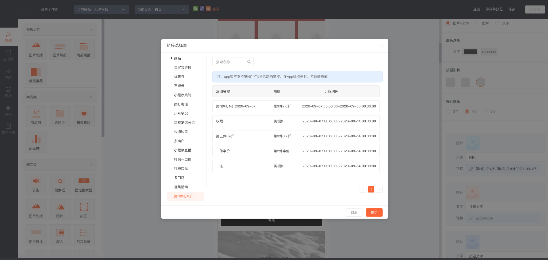 (5)店铺装修可以选择正在进行中的第N件打N折活动。