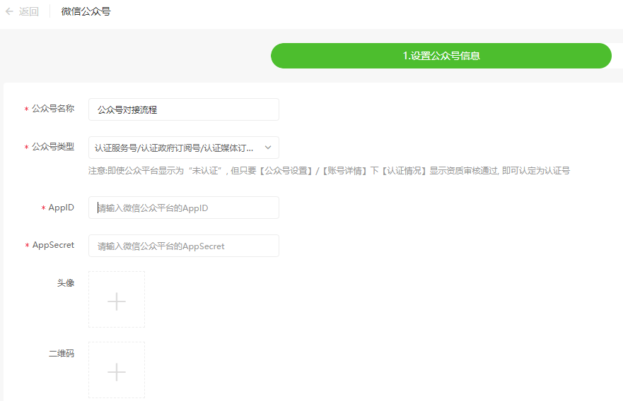 对接绑定的方式业务端管理员可以直接手动绑定公众号,填写对应的参数信息,以下是详细的操作设置:
