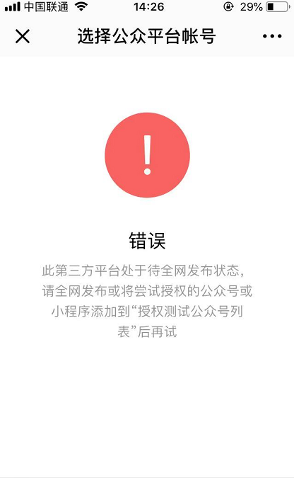 这个提示是因为管理端管理员没有在微信开放平台中进行全网发布。