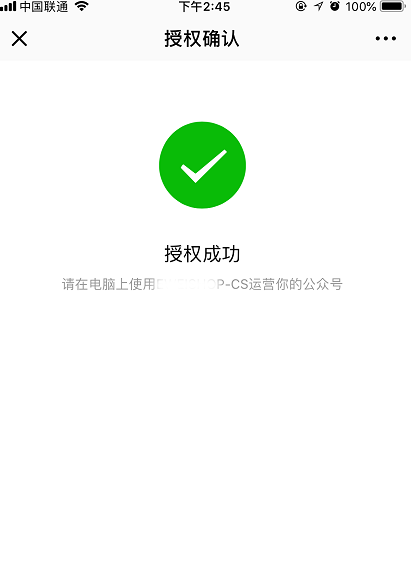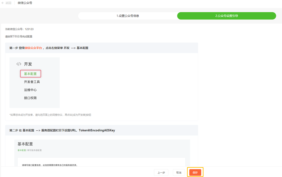 第四步:微信公众号平台配置完成后,业务端保存,公众号授权成功。