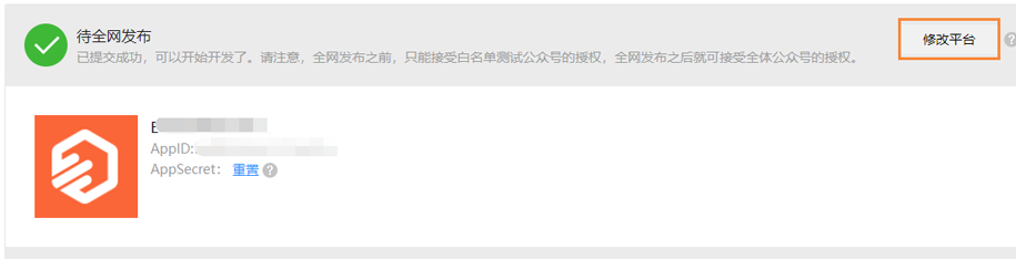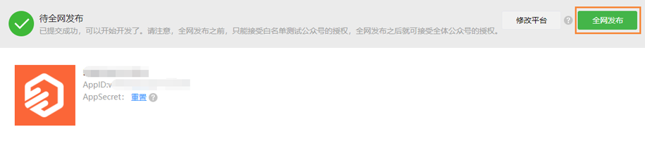 如果没有进行全网发布,管理端管理员可以将公众号的原始ID绑定至微信开放平台作为测试进行访问。