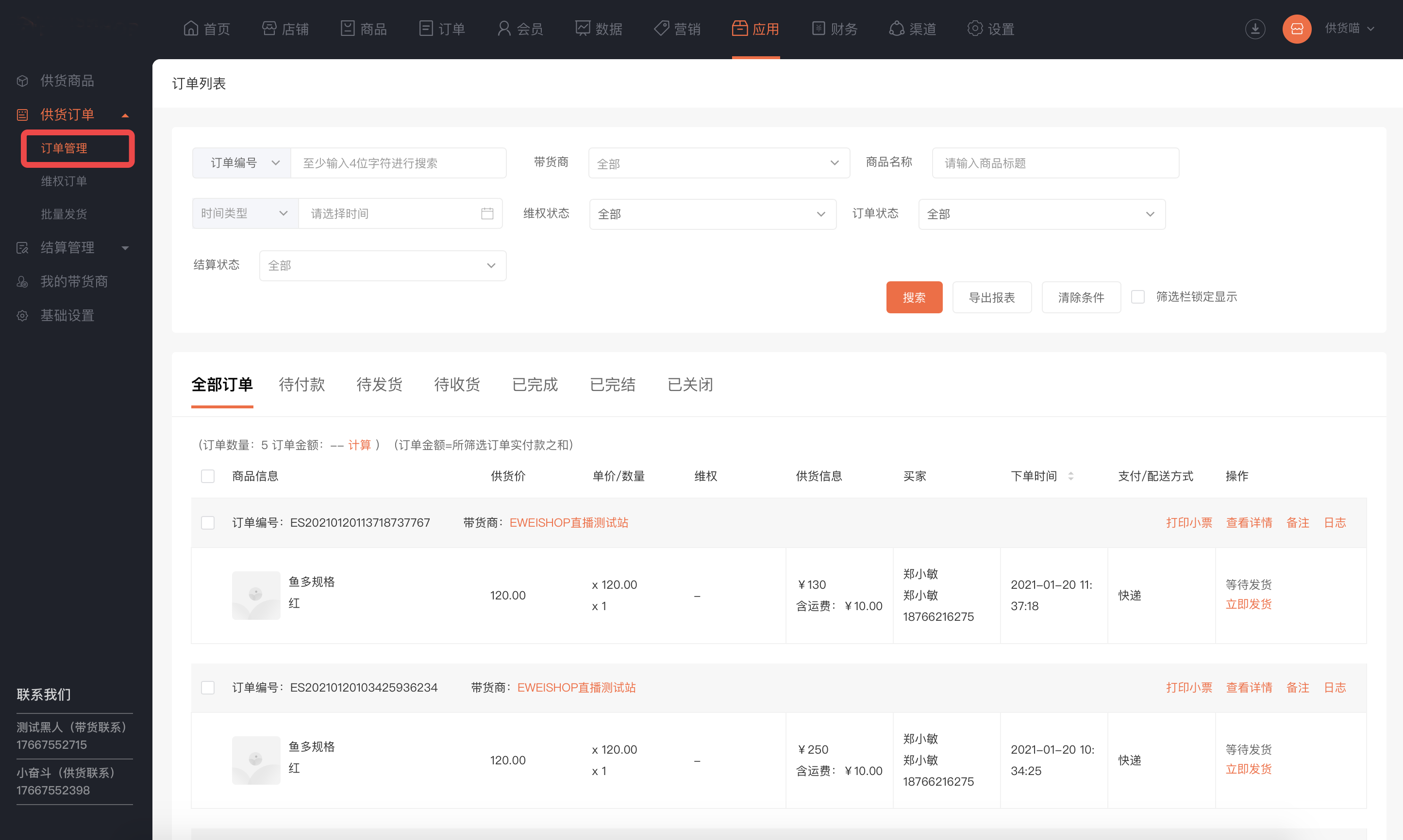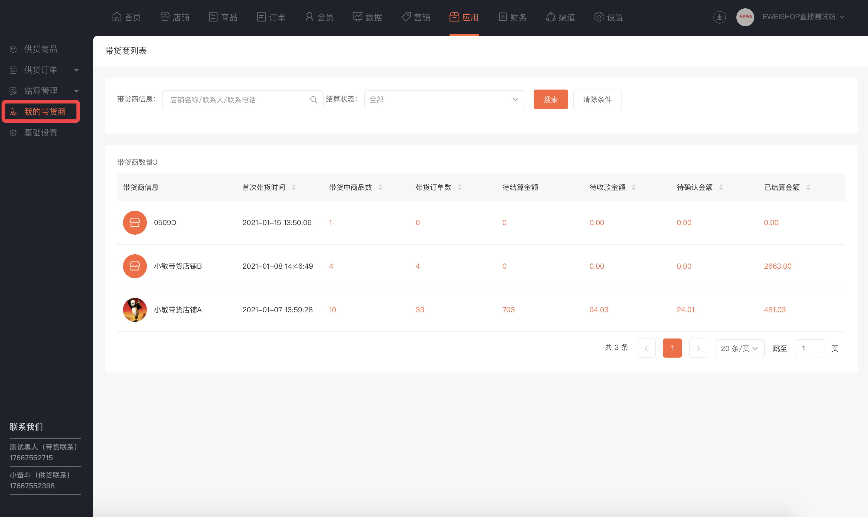 供货模式:供货所有带货商(所有带货商可获取供货商商品并出售)