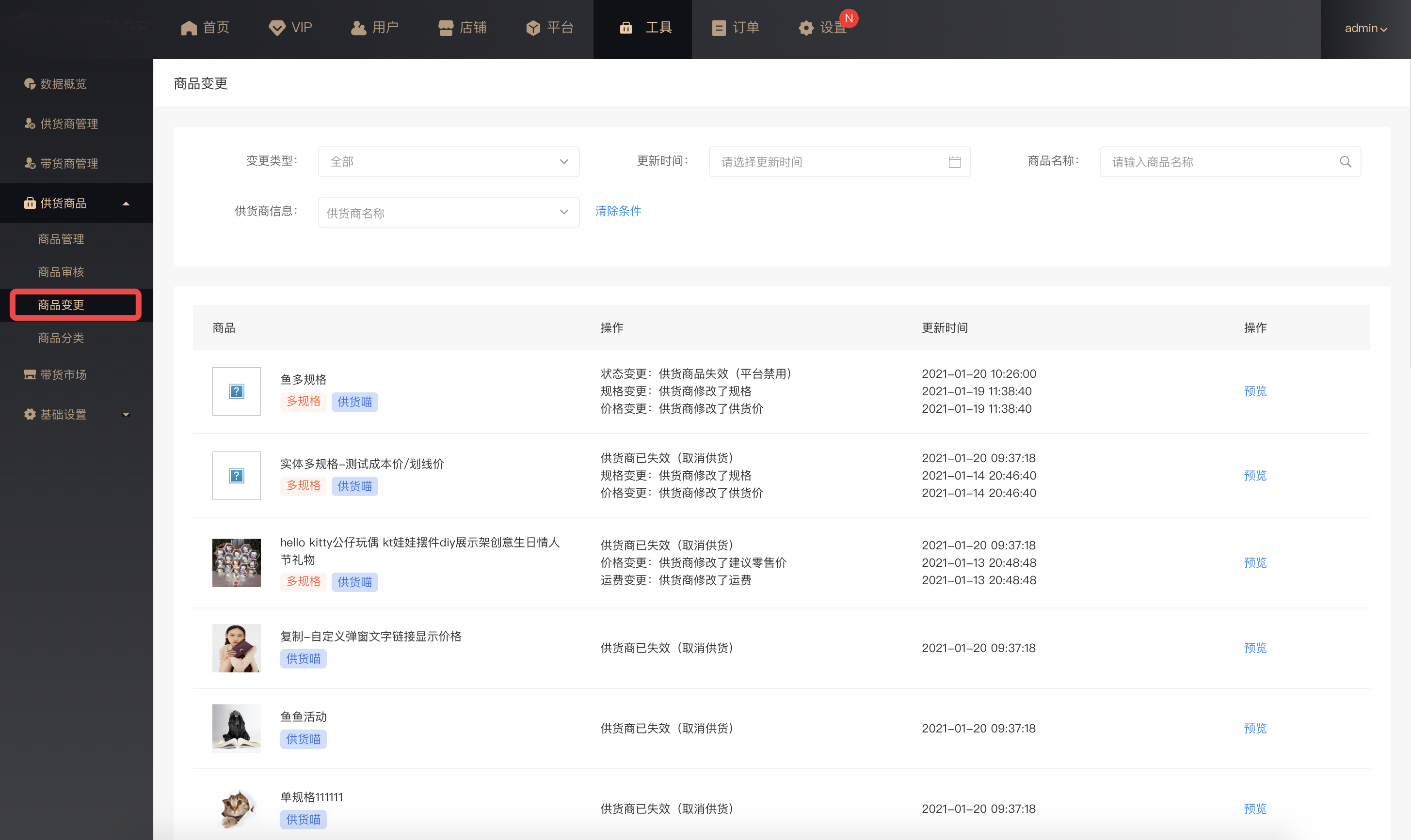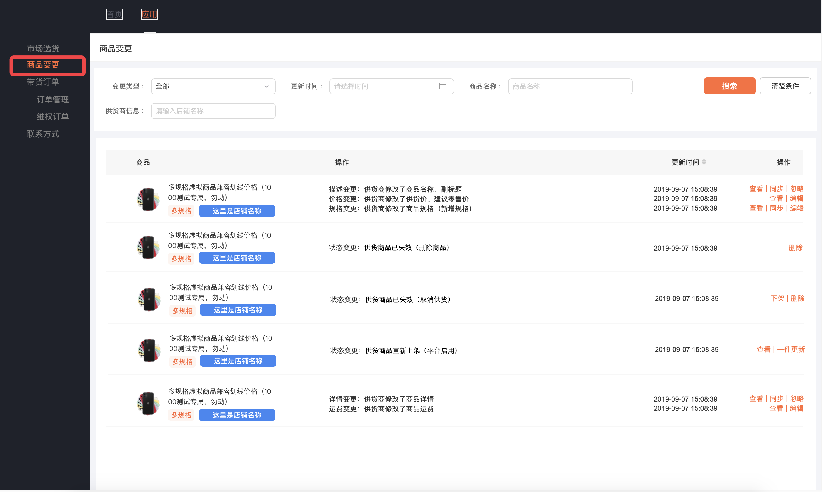 商品变更:展示供货商品变更信息