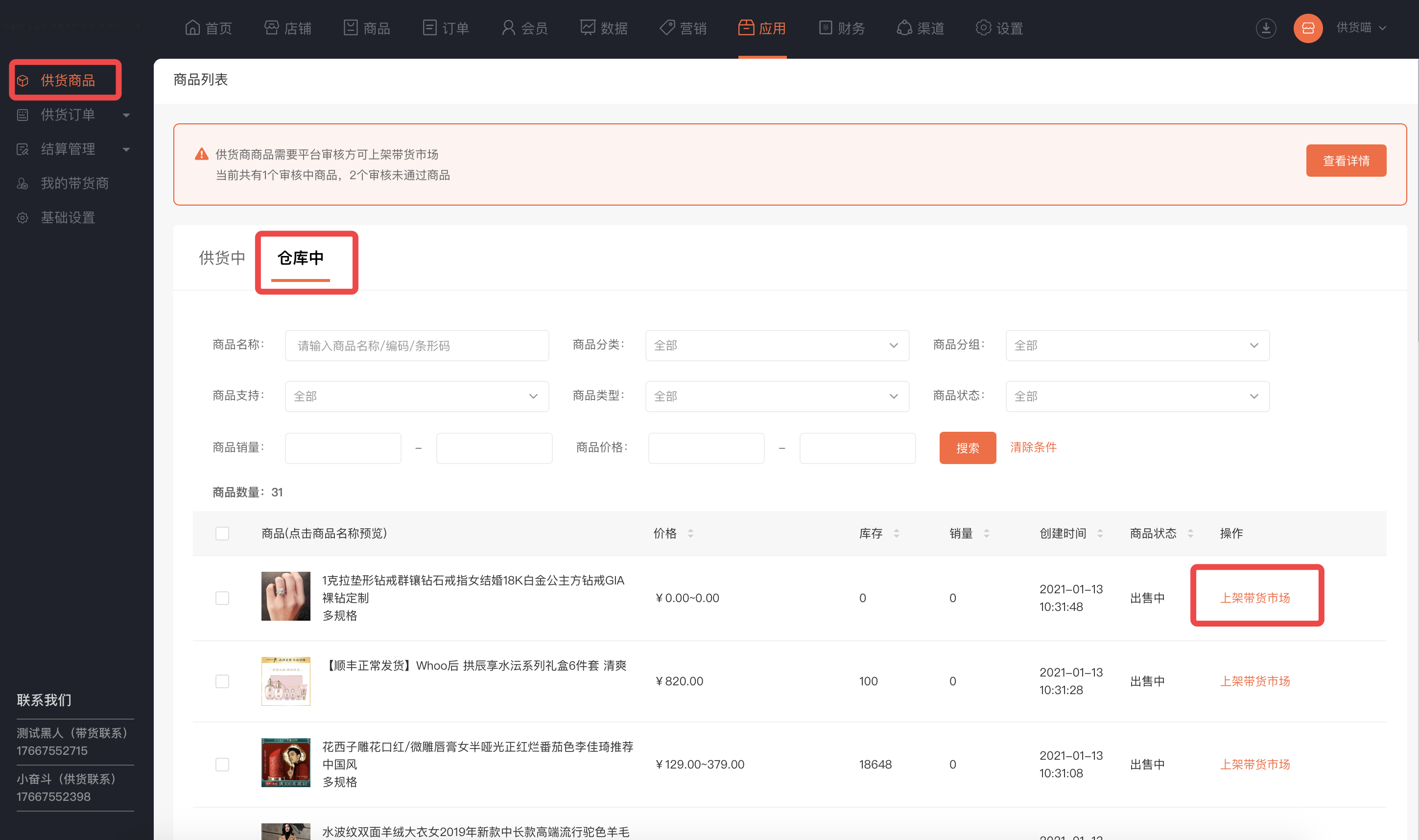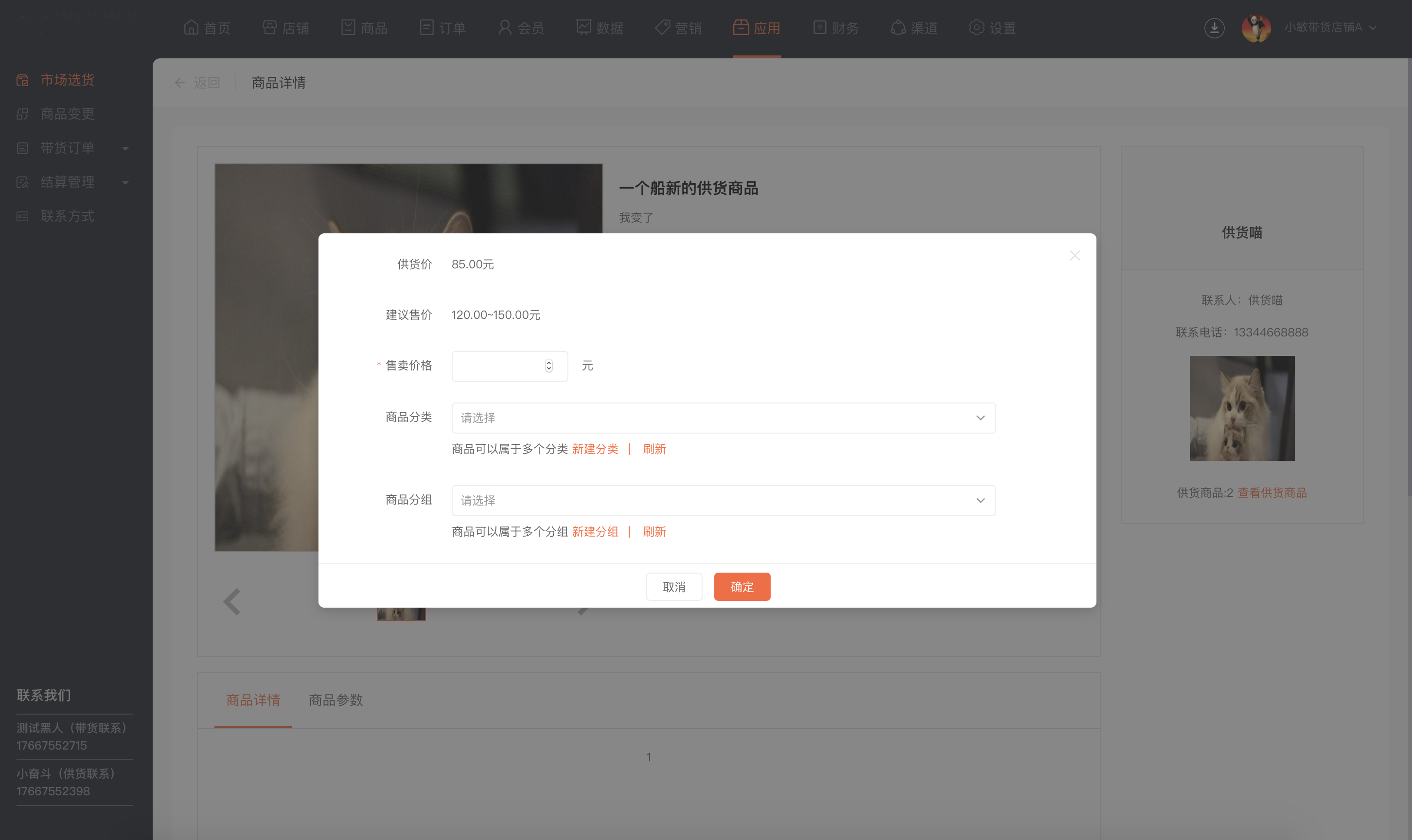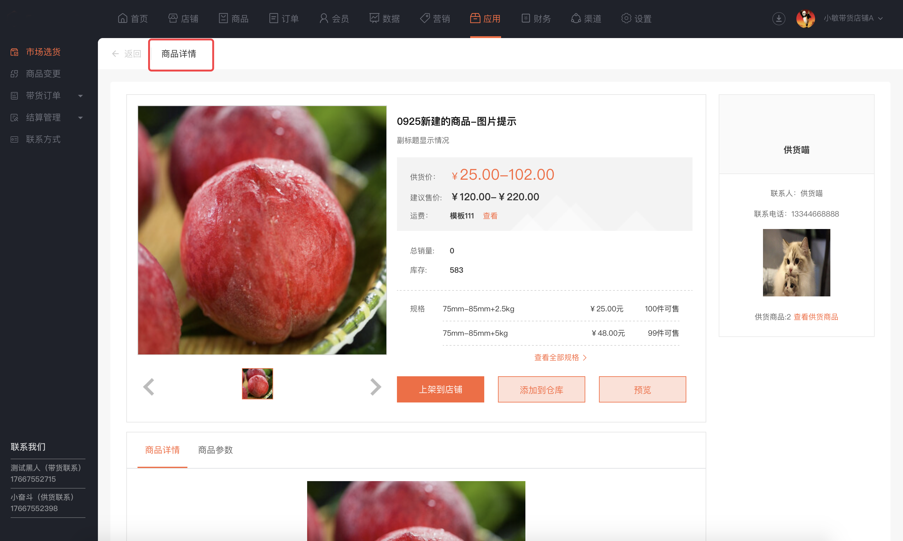 联系客服(业务端开放供货商入口,店铺可联系平台申请成为供货商)