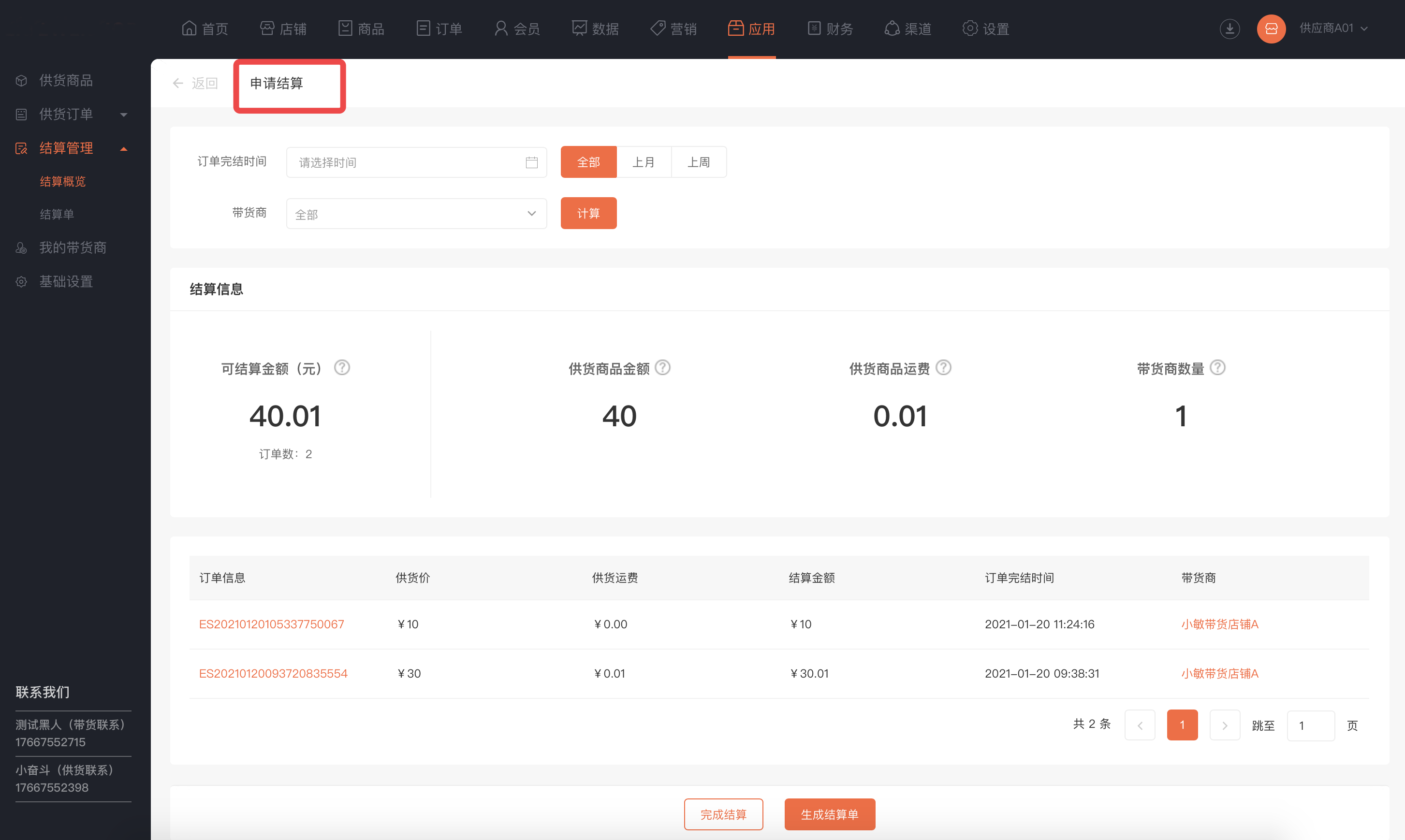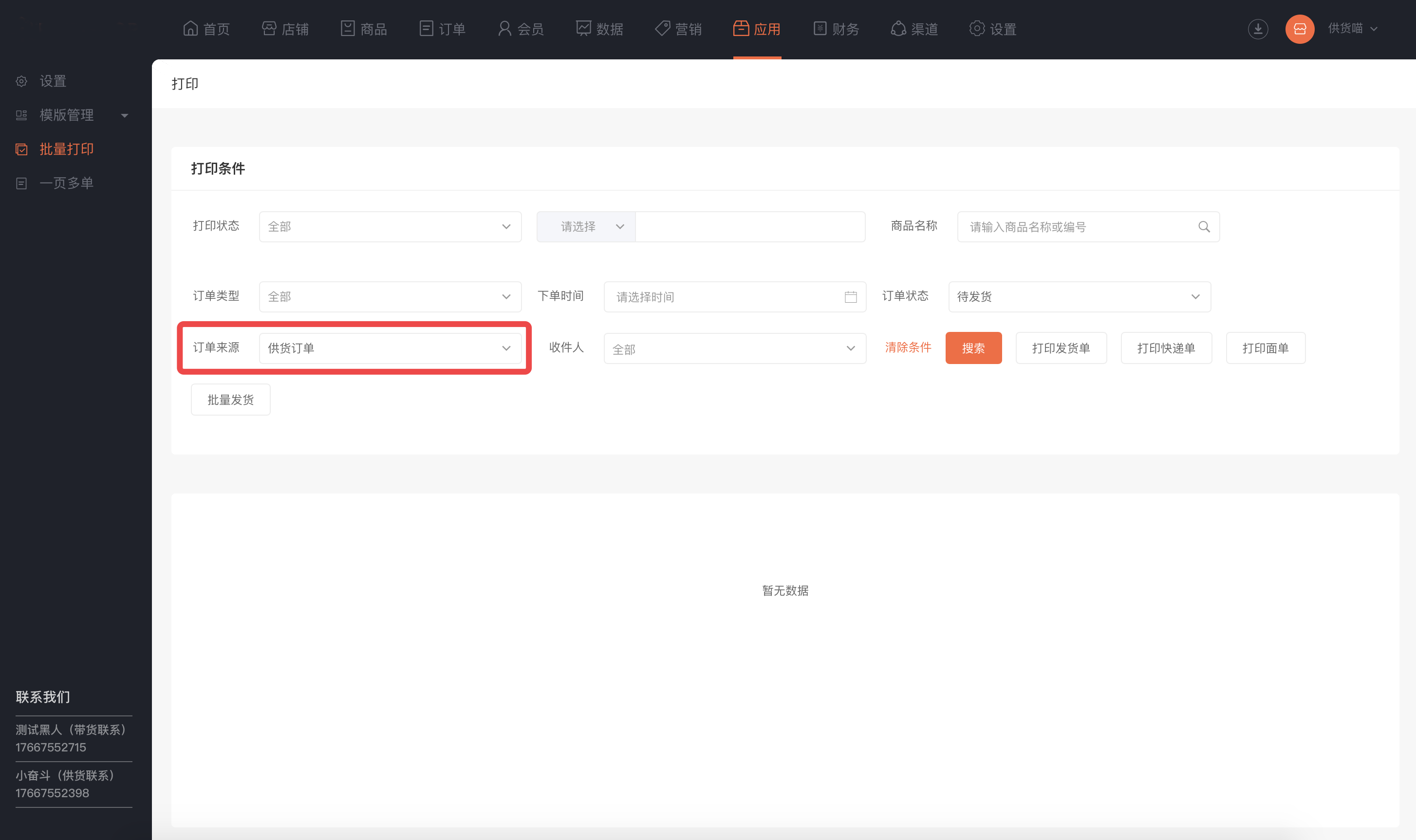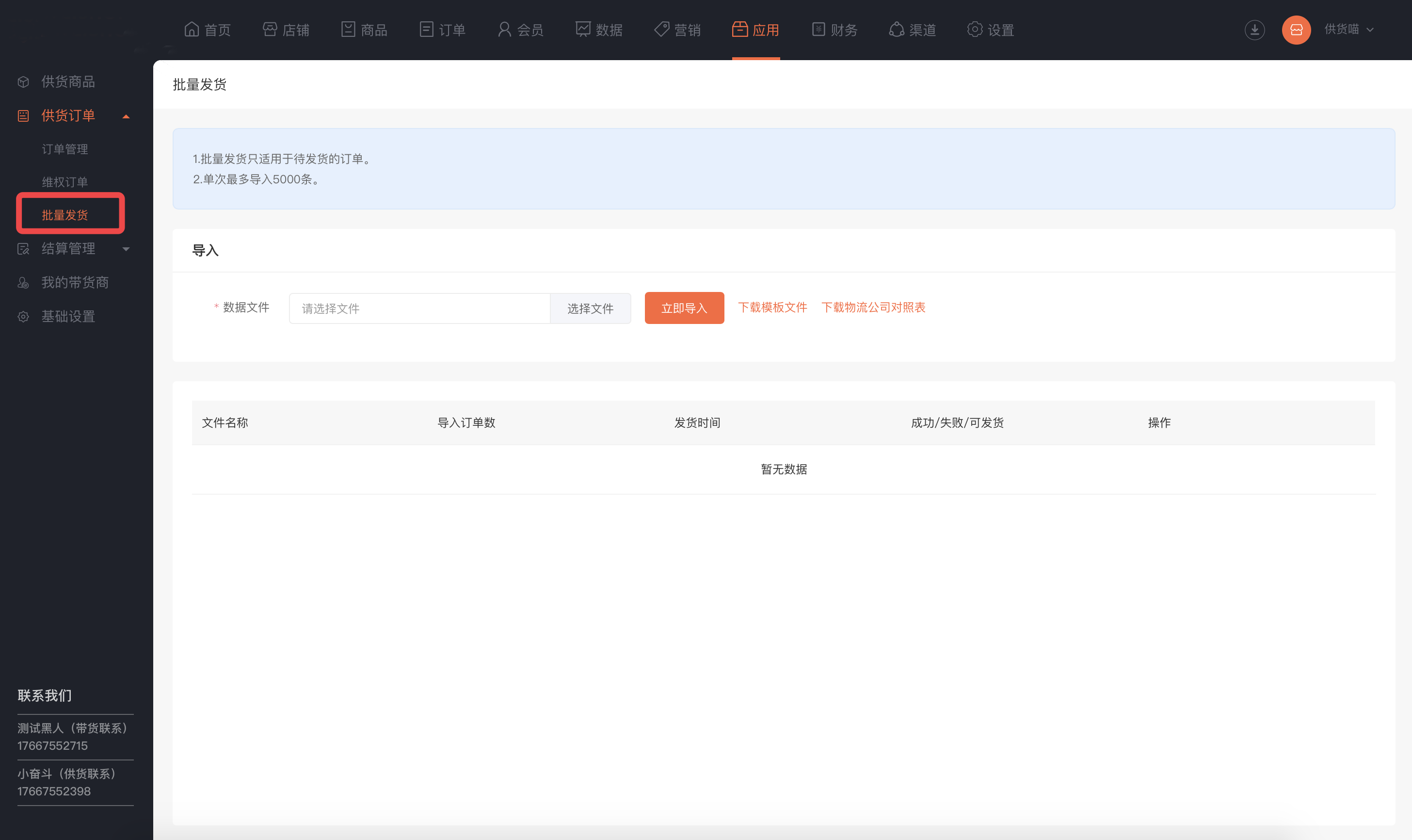 联系客服(业务端开放供货商入口,店铺可联系平台申请成为供货商)