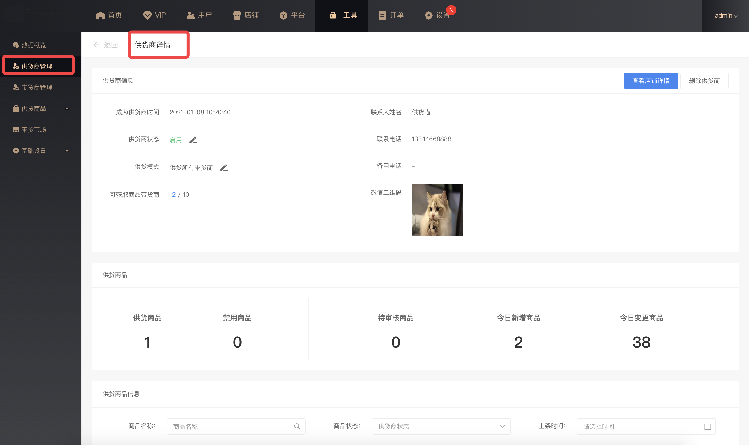 供货商详情:展示供货商基础信息和供货商品信息