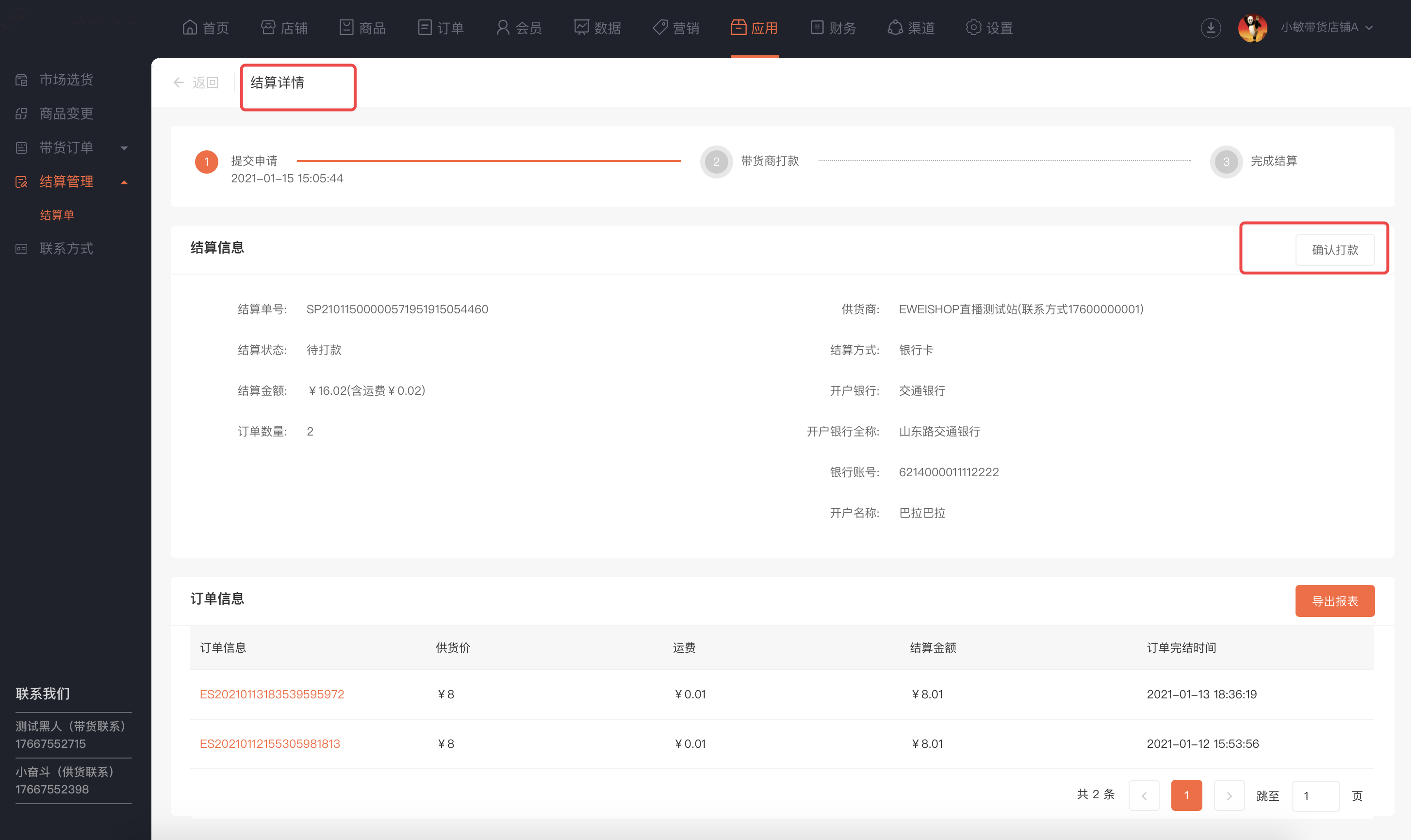 后续将开放“平台收款”模式:带货出售商品由平台统一收款,供货商和带货商向平台申请结算,由平台线上打款
